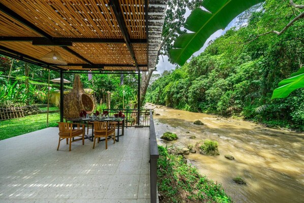 Outdoor dining - Jungle River Villa for 10 |Pool, ATV, Tubing| Ubud (Sukawati)