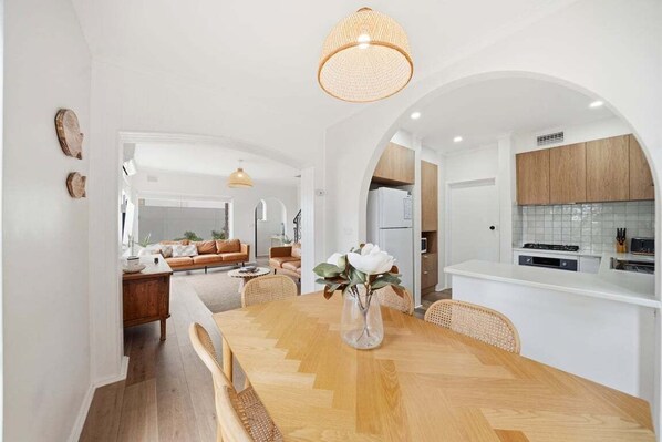 Spacious open-plan kitchen, dining, and living area with plenty of natural light