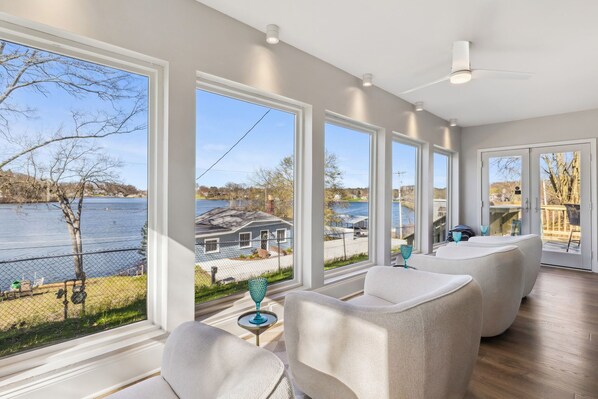 We loved this lake house with terrific views of the lake from inside and outside of the house. The white chairs inside provided peaceful viewing of the lake. The outside deck is a nice feature where we enjoyed our morning coffee and evening beverages! It made our visit to CVNP very memorable!