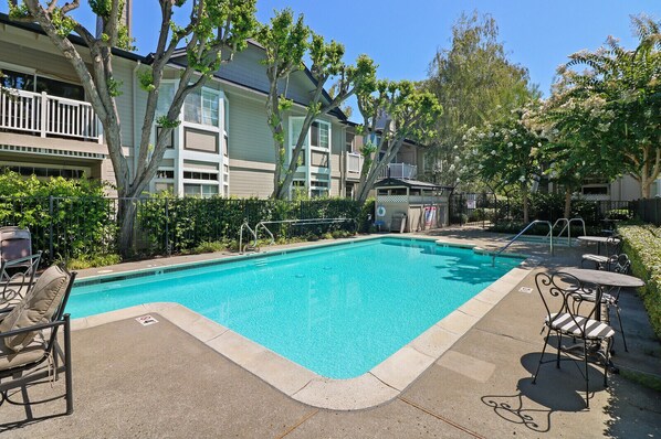 Great space, well decorated, easy living. Pool and parking easy access. BBQ on deck. Close to Iron Horse Trail for biking/walking/running. Walk to Alamo town for food/shopping. 680 a few blocks away. Has worked well for us when visiting family in the area.