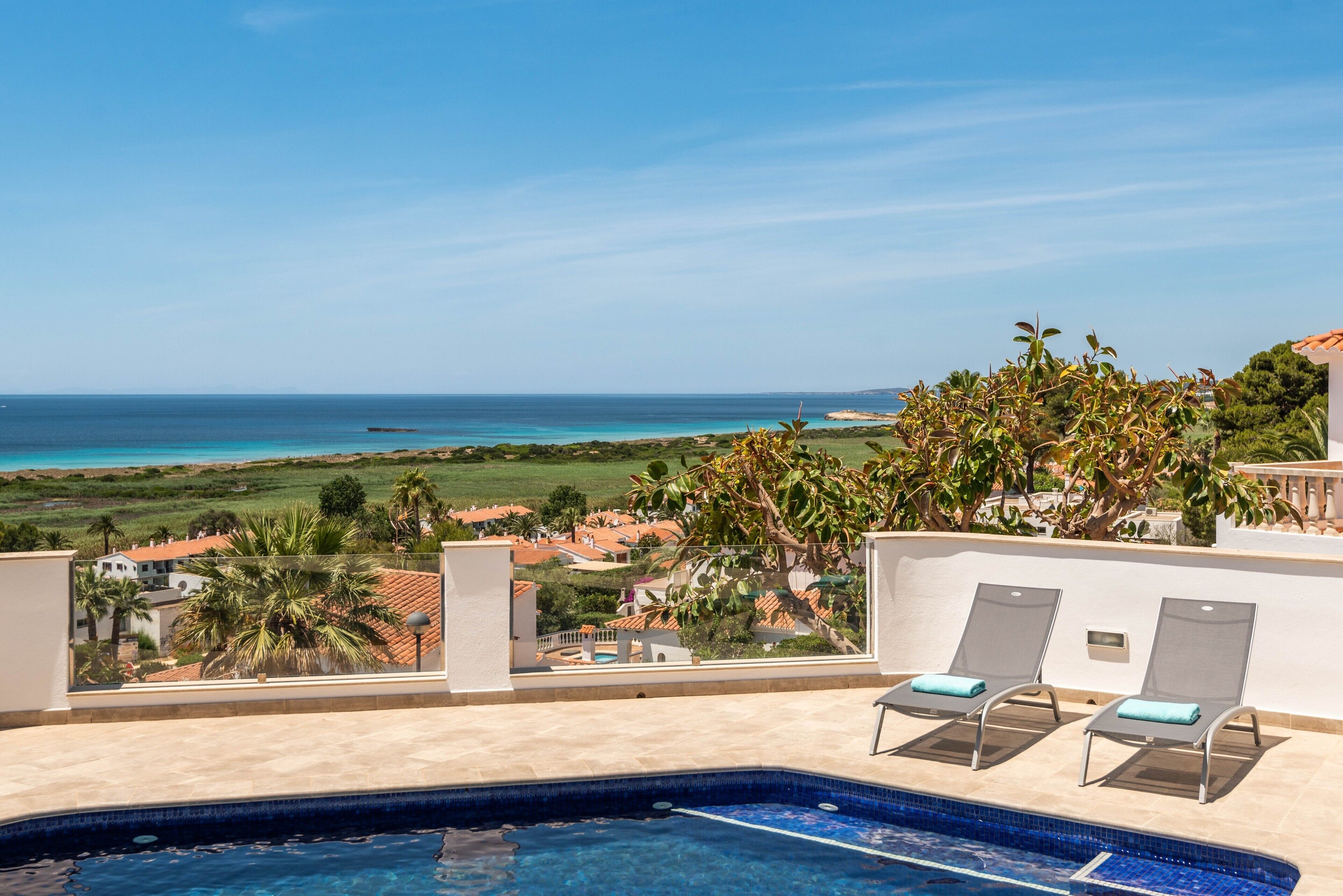Villa Atlantis is a modern Mediterranean-style comfortable villa located on the second road of San Jaime with incredible views of Son Bou Beach. The outside spaces are one of this lovely villa’s principal attractions. The enormous covered terrace, with sofa area and built-in barbecue, will make summer nights even more special. The swimming pool is set on a lower terrace, with comfortable sunbeds and parasols.