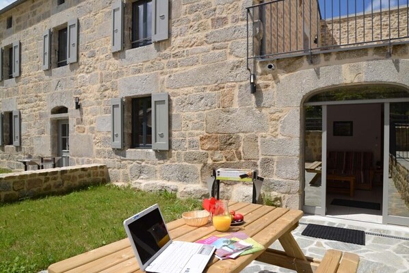 Outdoor dining - 2-person gîte at Ferme Lionnet (ALBARET LE COMTAL)