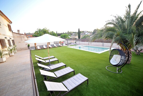 With its own sun lounger inside the water, large lawn where you can relax in the shade or sunbathe comfortably.