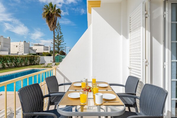 The swimming pool and barbecue are in a common space for all guests of the urbanization.
