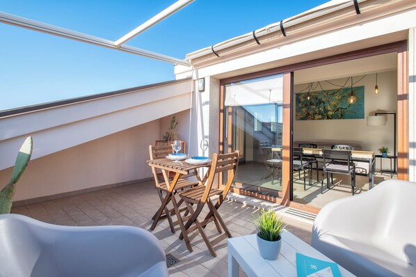 Outdoor dining - Apartment 'Clhome Elegant Rooftop with Terrace' with Terrace and Air Conditioning (Alghero)