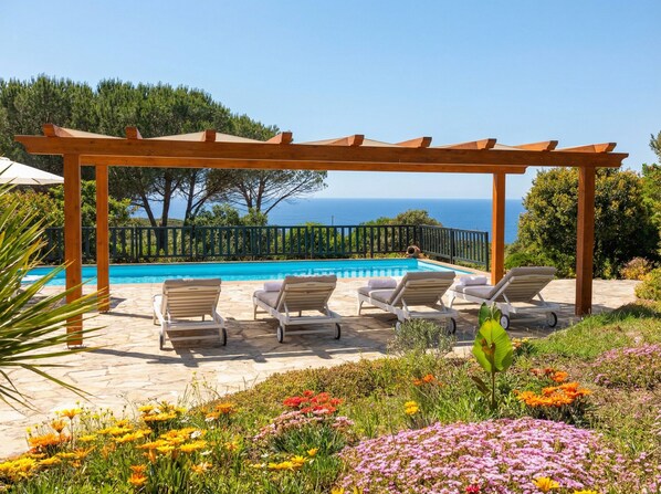 The large swimming pool with crystal clear water for completely exclusive use measures 10x5m with a depth of 140cm.