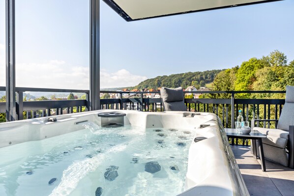 Enjoy your private sauna and a 37°C whirlpool on the balcony; jets can be used until 10:00 pm. Public transport, a bakery, supermarket, and pizzeria are within walking distance. A private parking space is available on the property. Security cameras monitor the outdoor area, entrance, and parking spaces.