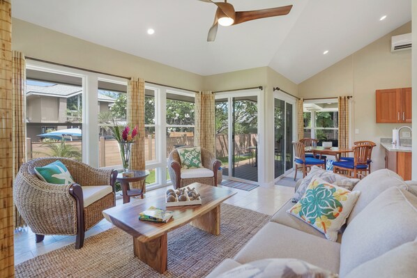 Please avoid getting suntan lotion and sunscreen on the furniture and wood decor. Please rinse your feet of sand before entering the home.