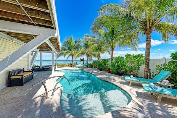 Located on the ground level and steps from your own private beach, you will love the sparkling pool and spa. There's something special about being in the water while overlooking the water. Hopefully, you'll be inspired to tell your own Dolphin Tale!