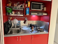 The room had the most uncomfortable wooden chairs and the bed was hard as a rock. No Kleenex or paper towels or cream rinse was supplied. The kitchen did not have basic utensils to even heat up leftovers. The best part of the resort was the wonderful restaurant with spectacular views. The beach was beautiful and calm. I would not return.