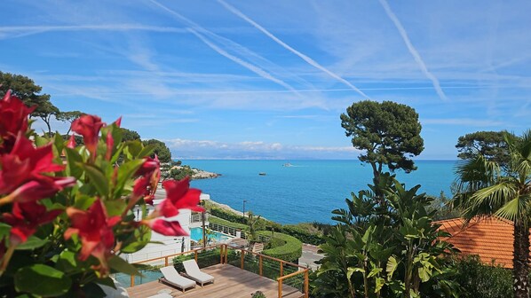 Jem of Paradise is a tranquil retreat in Cap d'Antibes with panoramic views of the sea, Alps, and Bay of Nice. This 6-bedroom villa offers an unforgettable experience just 200 feet from the shore and within walking distance to Beach de la Garoupe.