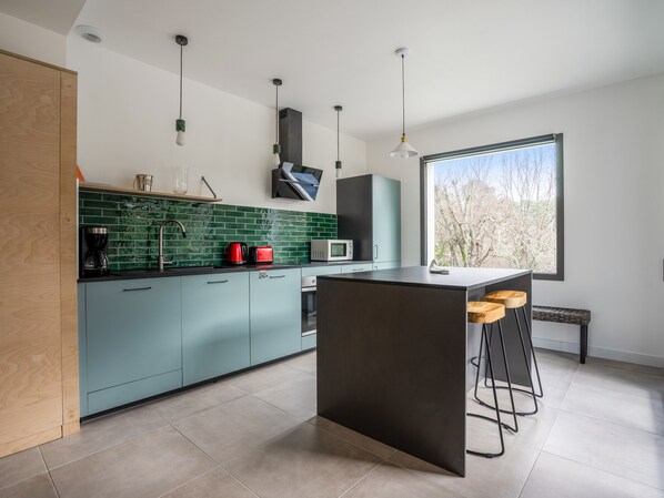 - fully-equipped open kitchen (coffee machine, toaster, kettle, blender, oven, microwave, fridge, hob, dishwasher),