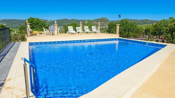 Estuvimos el verano de 2014 y superagusto.Retirado del pueblo, perfecto para descansar .Ni un ruido por la noche. Calorcito por el dia y por la noche fresquito para dormir bien.Las camas super comodas. La piscina un lujo, el chill out montado en la piscina(no sale en las fotos...ponedlo!!!!) de coña, al mediodia vermut, por la tarde cervecita viendo el como se va el sol...Brutal!!!! La dueña una muy amable. Se nos rompio la tele y en un par de horas nos trajeron otra. El unico pero la encimera de la cocina ,un poco pequeña...pero por lo demas perfecto. Lamento si en las fotos no se ve bien la zona del "chill out" y la piscina.