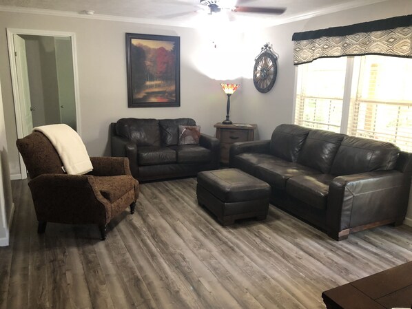 This lovely new 3 bedroom 2 bath home is located MINUTES from The Biltmore Estate, Asheville Outlets, Blue Ridge Parkway, Bent Creek and Downtown, but still has the feeling of a private wooded environment . Enjoy the view of the mountains with a horse farm in the backdrop and the occasional family of deer crossing the path, while sipping your coffee on the covered porch in the pristine forest location. Nicely appointed home features comfortable beds, fully equipped kitchen, wi-fi and 55” tv. If you an outdoor enthusiast, you will love the hiking, mountain biking, road biking, kayaking, white water rafting, snow skiing and horseback riding just minutes from the cabin. Asheville has a strong tradition of street performance and outdoor music, including festivals, such as Bele Chere and the Lexington Avenue Arts & Fun Festival (LAAFF). One event is "Shindig on the Green," which happens Saturday nights during July and August on City/County Plaza. By tradition, the Shindig starts "along about sundown" and features local bluegrass bands and dance teams on stage, and informal jam sessions under the trees surrounding the County Courthouse. The "Mountain Dance & Folk Festival" started in 1928 by Bascom Lamar Lunsford is said to be the first event ever labeled a "Folk Festival". Another popular outdoor music event is "Downtown After 5," a monthly concert series held from 5 pm till 9 pm that hosts popular touring musicians as well as local acts. A regular drum circle, organized by residents in Pritchard Park, is open to all and has been a popular local activity every Friday evening.