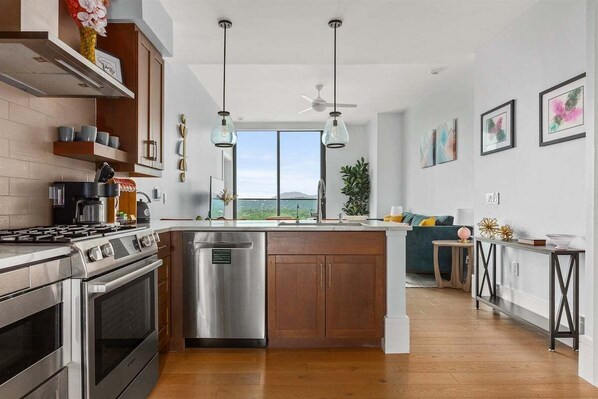 The apartment is true to listing and really impressive upon entry. The valet and entry is easy, the building is beautiful and well-kept. The location is fantastic and makes for easy access to all of downtown by foot. The flat itself is on a quiet hall with other Vrbo renters, but we only saw one other renter in our 5 days. The view was amazing. We did hear street sounds but it did not disrupt our sleep. The place is well appointed with basics, and the coffee was local and delicious. The only essential missing for the coffee was creamer and the front desk assisted me with that. We would definitely rent this unit again!