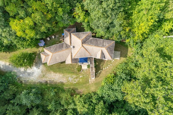 Natures Haven, a secluded mountain retreat home offers the tranquility of a sprawling hillside with outdoor living space perfect for relaxation. With two bedrooms and two full baths in Apartment one, unwind in the master bath's large jacuzzi tub or explore Asheville just 4 minutes away.