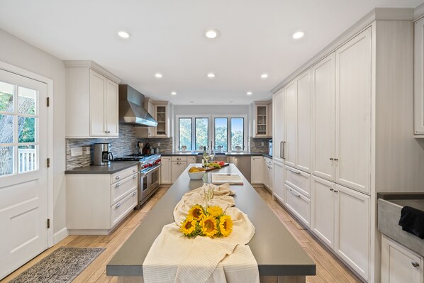I could have not been more pleased with this property. We were in town for my daughters wedding and the amenities offered at this location was a wonderful retreat for all of us. There was plenty of space for everyone, even when the girls were getting their hair and make up done in the morning before the wedding at The Lake Pavilion (short 10 minute drive away). This was a dream kitchen for me to work in. The appliances were high end and everything stocked in the kitchen (knives/plates/pans/etc.) were just as nice and plentiful. We absolutely loved our stay and would highly recommend this clean and easy to use property. I would stay again!!!!!