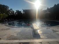 Yes, this property has a seasonal outdoor pool. Pool access is from 10:00 AM to 8:00 PM.