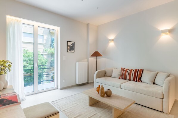 Experience modern luxury and historic charm at Heritage Haven. Enjoy a serene private balcony with lovely views, two stylish bathrooms, an open-concept living area with a sleek sofa bed and fully equipped kitchen for meal preparation.