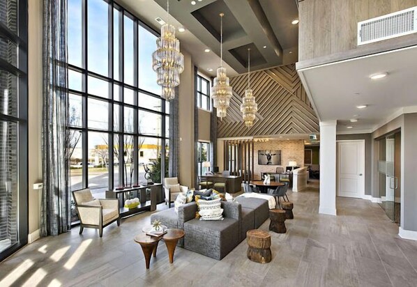 Enjoy full access to the refreshing seasonal swimming pool, and rooftop outdoor lounging areas complete with BBQ grills and a delightful social experience. Stay active with 24-hour access to a state-of-the-art fitness center, or relax in the clubhouse lounge, equipped with all the comforts of a cozy retreat, cyber cafe' and large flat-screen TVs. Business travelers will appreciate the seamless workspace, complimentary high-speed Wi-Fi, and access to a community business center designed to meet every professional need.