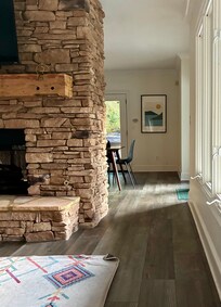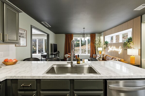 Escape to a serene creekside retreat in the heart of ATL, where 5-person hot tub and sauna await. Inside, unwind by the indoor double-sided gas fireplace or enjoy quality time with family in this fully equipped kitchen. With wrap-around deck and BBQ grill at your disposal, you'll feel right at home.
