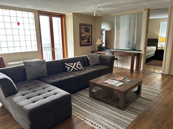 In the heart of downtown Atlanta, this condo offers a stylish retreat with Brazilian Cherry floors and leather sofas. Unwind in front of the 42' TV or step out onto the balcony for great city views.