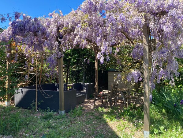 Travelers find natural harmony and comfort at this self-sufficient Auriac-du-Périgord retreat, where farm-fresh walnut oil and honey complement garden relaxation