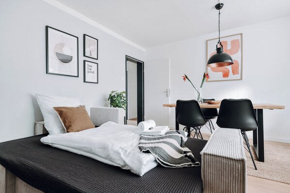 1 bedroom, desk, iron/ironing board, travel cot - NASA Homes | Quiet 2-room apartment | Balcony | Netflix | Hotel beds (Bad Bevensen)