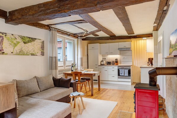 The holiday apartment Fachwerk Zum Entspannen, Max 3P is located in Bad Emstal and is the ideal accommodation for a relaxing getaway. The 37 m² property consists of a living room, a kitchen, 2 bedrooms and 1 bathroom and can therefore accommodate 3 people. Additional amenities include children's books and toys. A high chair is also available. This accommodation does not offer: Wi-Fi and towels.