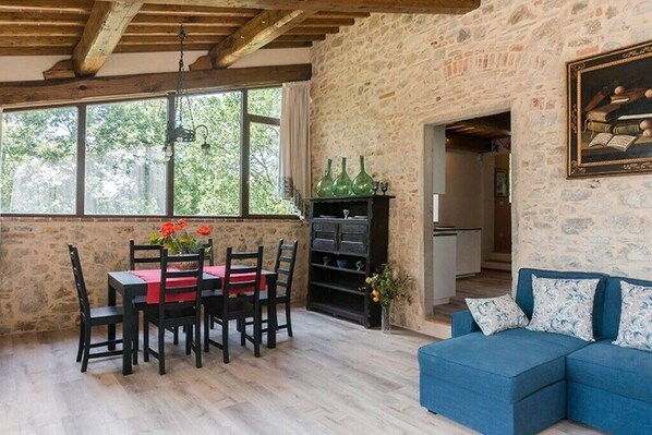 My cottage is hidden in Tuscan countryside among olive groves, vineyards and woodland. However, downtown Florence is only 16km away (20 mins drive)!The house can host max 6 people and one infant (one queen bed, two single beds, one double sofa bed).