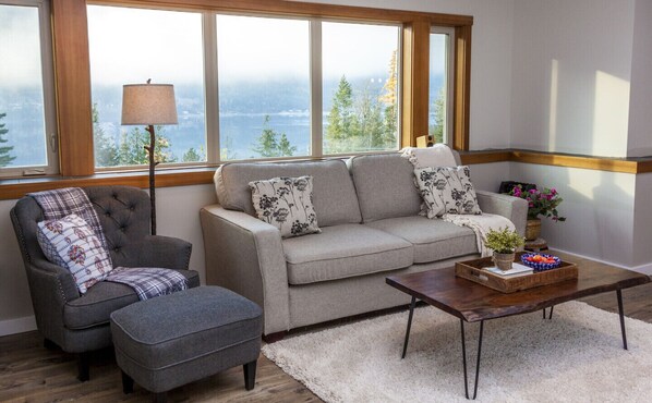 Gorgeous view from large windows and a great patio where we spent many hours chatting and barbecuing. All the amenities that anyone could want in a rental home including lots of kid toys to keep our little ones entertained. Close proximity to explore Nelson and the many hiking trails in the area. It is also literally 5 minutes from the ferry. We thoroughly enjoyed our stay.