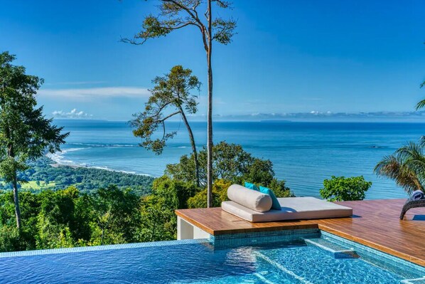 Perched above Playa Hermosa, Hermosa Resort offers an exclusive high-end escape with views of the Pacific Ocean and Whale's Tail formation. Relax in the large infinity pool or unwind on the outdoor terrace with sofa, chairs, and hammocks amidst lush tropical gardens.