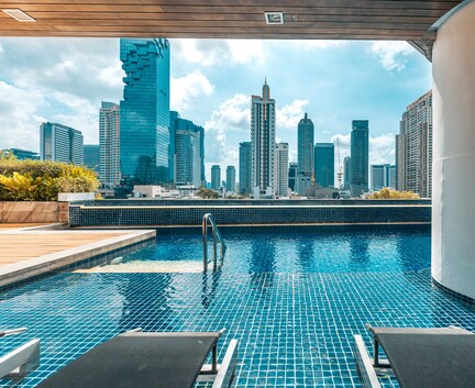 Travelers wake up to Bangkok city views before enjoying poolside breakfast at Pullman Bangkok Hotel G, a perfect base for exploring nearby cultural landmarks.