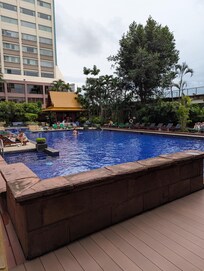 Ramada Plaza by Wyndham Bangkok Menam Riverside offers a peaceful urban retreat. Enjoy massages at Heavena Wellness & Spa, swim in the outdoor pool, or dine at two on-site restaurants. The luxury hotel also offers fitness classes and shopping.
