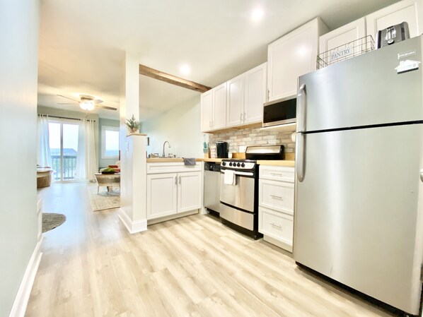 Enjoy your morning cup of coffee or evening hot chocolate or hot cider from our Keurig we supply a variety for you to enjoy! There is unlimited Wi-Fi, 3 new smart TVs with full cable line up, prime, Disney+ & streaming. There is a blue tooth sound bar in the living room for you to enjoy your music as well. Sit on your private balcony with a seasonal partial view of Grandfather Mountain to your left and peek at the top of the ski slopes long range and enjoy your morning coffee or relax with some local wine!