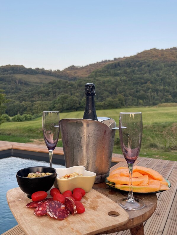 Outdoor dining - Galhareta - La Maison Rose, 18th century manor house with swimming pool in the Basque Country (Barcus)