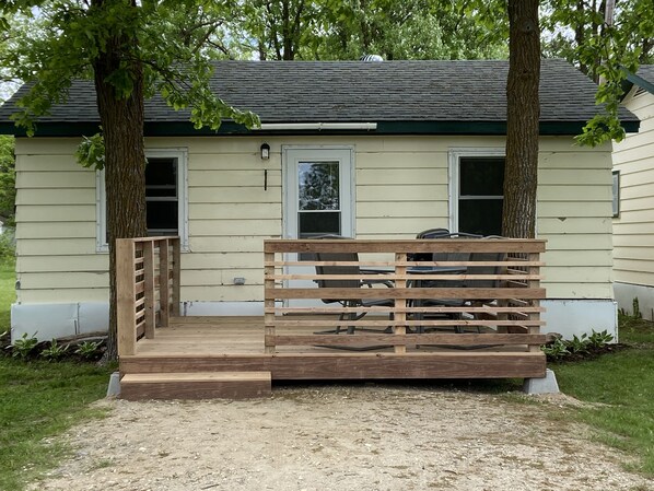 Two bedroom, 1 bath cabin that is approximately 400 sq ft. Cabin is fully furnished and sleeps a total of 4. There are 4 single beds, 2 in each bedroom. Cabin rental includes dock slip. Cabin also includes microwave, toaster, coffee pot, BBQ grill, cable television and air conditioning.