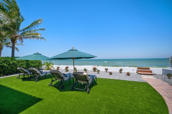 Soak in the sun on the loungers in the backyard or on the beach located behind the home! Take a dip on the gorgeous bay or bring out your snorkel to search for local aquatic life! Located near bustling Pine Avenue where you can find shops, restaurants, and access to the Free Anna Maria Island Trolley.