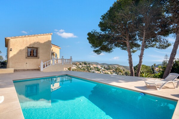 In Benitachell, the villa Landhaus Mit Pool Und Spektakulren offers an excellent view of the Mediterranean Sea. The 2-storey property consists of a living room, a kitchen, 3 bedrooms and 2 bathrooms and can therefore accommodate 6 people. Additional amenities include Wi-Fi with a dedicated workspace for home office, a TV, air conditioning as well as a washing machine. This vacation rental offers a private pool, garden, open terrace, covered terrace, balcony, barbecue, and outdoor shower.