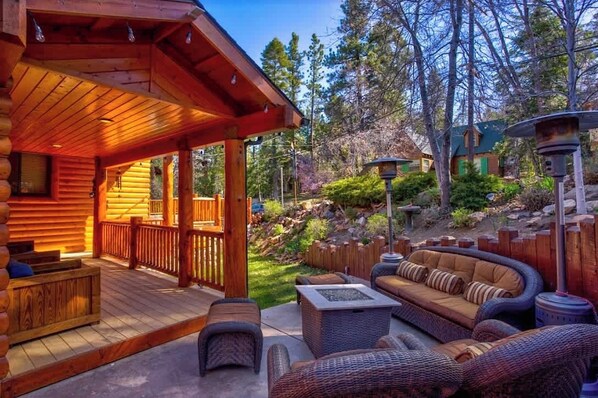 Escape to Big Bear Reset, a serene mountain retreat nestled among the trees. Unwind with family and friends in this spacious single-story home featuring a wood-burning fireplace, large deck with BBQ grill, and 6-person spa for relaxation.