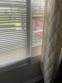 Pictures online are a little deceiving bedrooms and bathrooms were OK but living room couch and chair stained, blinds broken, kitchen horrible pots, and pans where greasy most unusable foil lining the oven and the microwave rusted out with a burning smell had to unplug which we desperately needed due to being there for bodybuilding competition, paint chairs and kitchen coming off and a swarm of wood bees and wasp at the front door when trying to get in and out challenging dogs barking at 3 AM and 6 AM for most all the nights we stayed