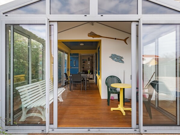 Outdoor dining - Cozy Villa Steps from Beach in Biscarrosse - WiFi, Terrace, Garden, Sleeps 6 (Biscarrosse Plage)