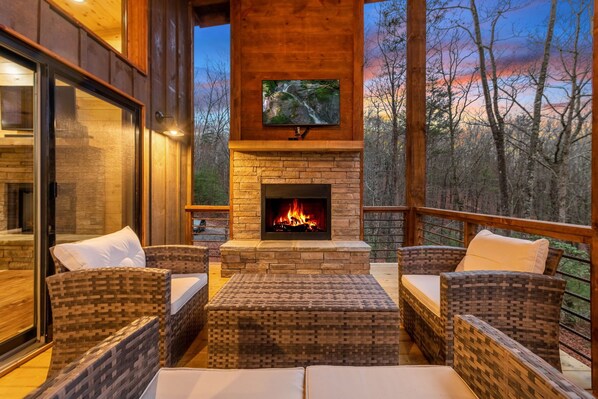 Escape to The Yellowstone, a luxury chalet nestled in the heart of Blue Ridge. Hang out on the spacious deck, grill up some steaks and unwind with cable TV by the wood burning fireplace or relax in style with fast Wi-Fi and a 7-person Caldera Spa.