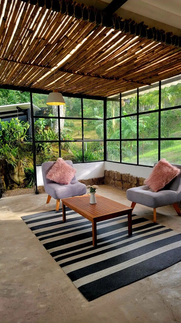Escape to Cabaña Fuego, nestled between the mountains of Namay, Alban. Relax in this unique retreat with sunrise views and sounds of nature. Unwind by the campfire area on the patio or enjoy wine and live music.