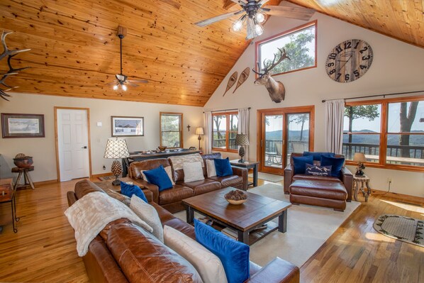 The cozy loft is set up with two twin beds and serves as a fifth sleeping area. The views from the loft might well be the best in the house, where a large picture window floods the great room with sunlight.