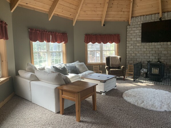 Spacious custom built home in Midcoast Maine with nearby attractions such as Reid State Park, Popham Beach, Robinhood Marina, Boat Ramps, Farmer's Market, Antique Stores, Five Islands Lobster Company, Georgetown Pottery, Hiking Trails, Downtown Bath, Freeport Outlet Shopping, LLBean, and so much more. Immerse yourself in this relaxing atmosphere in front of the cozy fireplace after a day of explorations, or go for a dip in the hot tub and make s'mores as you sit by the fire pit. This fully furnished comfortable home is secluded in beautiful Georgetown, Maine. With 3 bedrooms and 3 bathrooms this home comfortably accommodates up to 7 people. Bedroom 1 has a king bed with attached bathroom. Bedroom 2 has twin beds and a twin trundle. Bedroom 3 has a queen bed. All bedrooms are located on the second floor. The first floor has a living room with a cathedral ceiling and a beautiful floor to ceiling fireplace/chimney, a kitchen with a large table as well as extra seating at the bar and island, a bathroom with a washer and dryer, and an octagon room with a large couch for napping, reading a book, playing a board game, or watching a movie with surround sound. The hot tub is located on the front deck along with deck furniture and a grill for cooking and eating under the stars with your favorite friends and family. There is also a two bay garage for you to park your car in while you stay. Relax, unwind, and enjoy all the beautiful moments, and memories you will make.