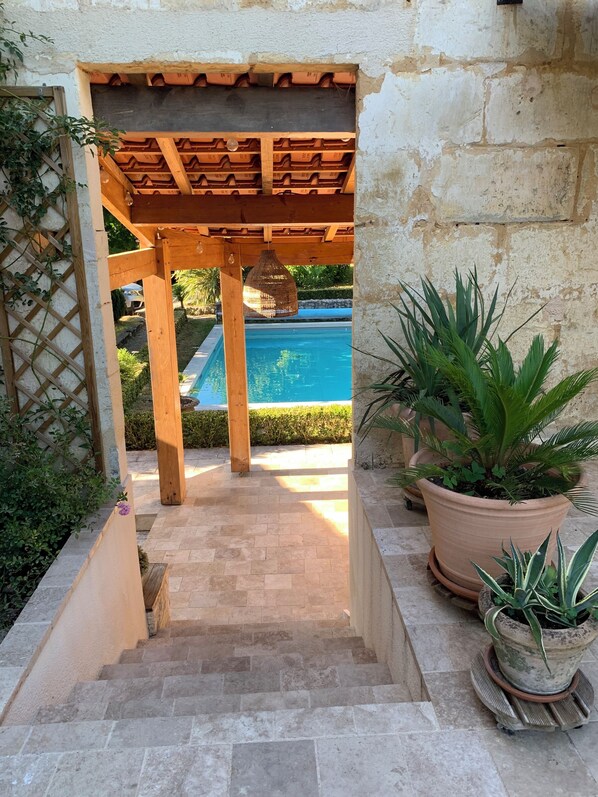 Beautiful stone house with swimming pool provides laundry facilities and more. Guests can connect to in-room WiFi.