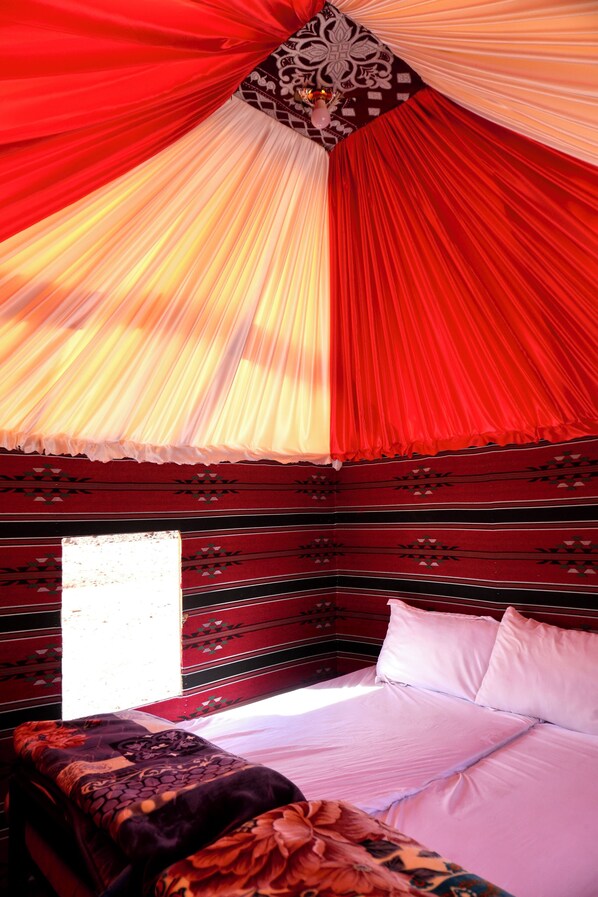 Enjoy a unique desert stay in the heart of Wadi Rum, where you can relax under the stars, experience traditional Bedouin hospitality, and wake up to stunning desert views.