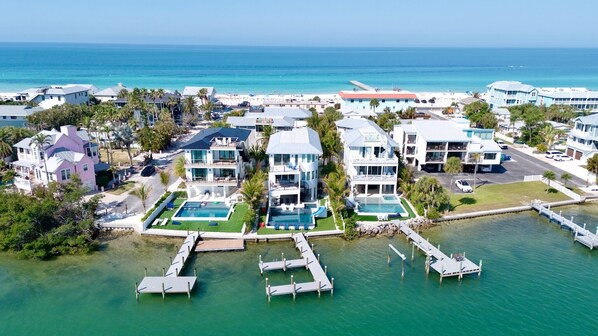 Get ready to indulge in the ultimate luxury vacation at Beach to Bay, a stunning three-level waterfront home in Bradenton Beach! This spacious bayfront estate features a private dock, a brand-new infinity pool with an in-ground spa and waterslide, and a sunny rooftop deck with panoramic views. Boasting six bedrooms and five and a half modern bathrooms, this home is perfect for families or groups seeking relaxation, water adventures, and breathtaking scenery. Located just a 2-minute walk from the beach with nearby shops, waterfront restaurants, and the local boat rentals, Beach to Bay is your perfect island escape!