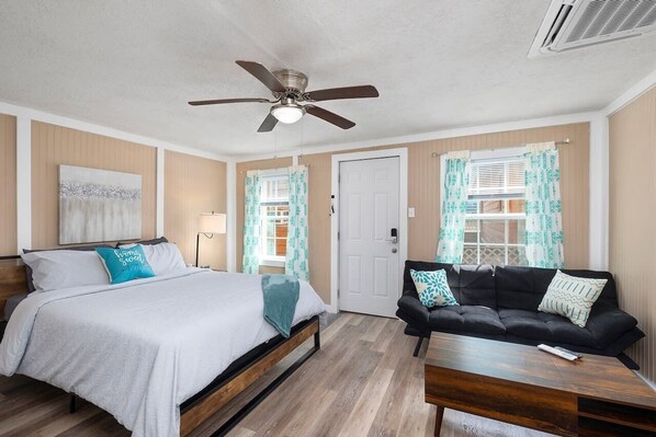 In the heart of Historic Downtown Branson, Wally's studio apartment offers a cozy retreat. With a queen bed and comfy futon, unwind in front of the 50-inch smart TV or prep meals in the fully equipped kitchen with coffee station.